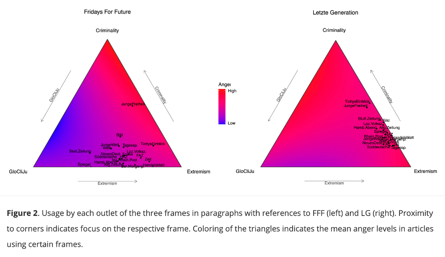 A similar picture emerges in journalistic coverage: reports on FFF are less toxic and refer to the cause of the movement (climate justice), whereas LG is primarily discussed from the perspectives of the extremism and crime frames. While only right-wing populist media talk about FFF in an extreme and toxic way, these voices are found in the entire media landscape when discussing LG protests. Subsequently, the language of rightwing-populist media is adopted across all outlets for the more disruptive protests.